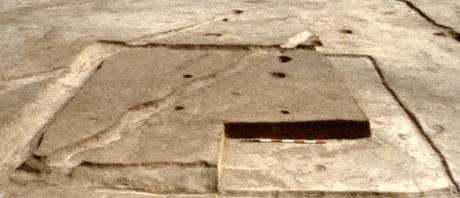 Tomba - Area del recinto quadrangolare con fossa della tomba 26 a cremazione (con ricco corredo, tra cui anello-sigillo)